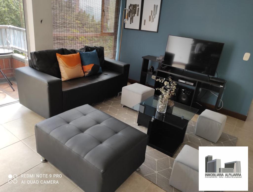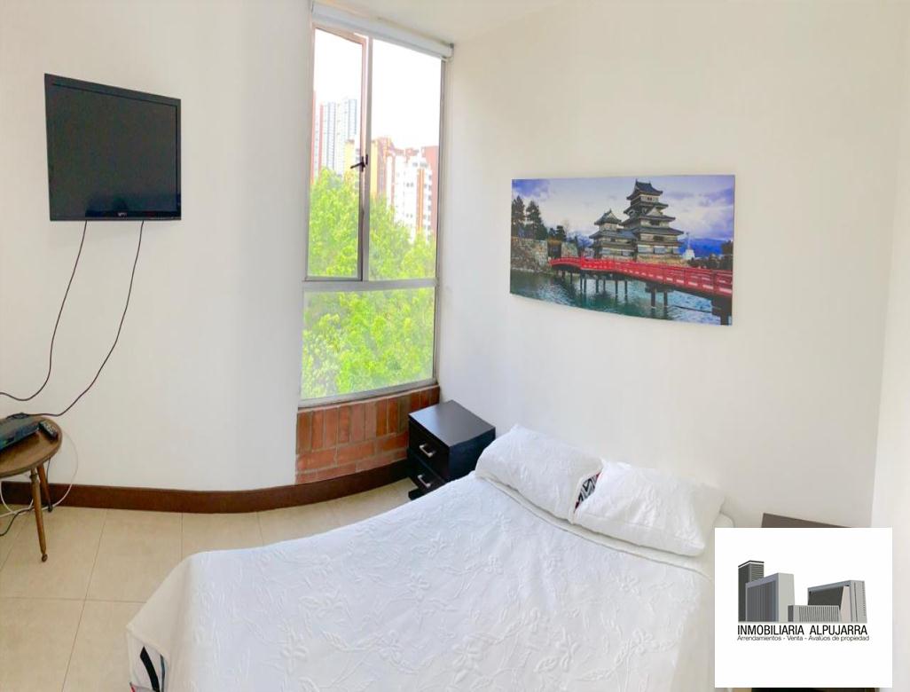 Arriendo Apartamento amoblado en el poblado, Loma de San Julian, en Unidad completra, Porteria 24 horas, piso 7, Balcon, sala comedor, cocina integral, 3 habitaciones, 2 baños,Parqueadero. Araes comunes: Piscina, gimnasio