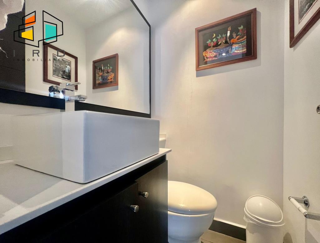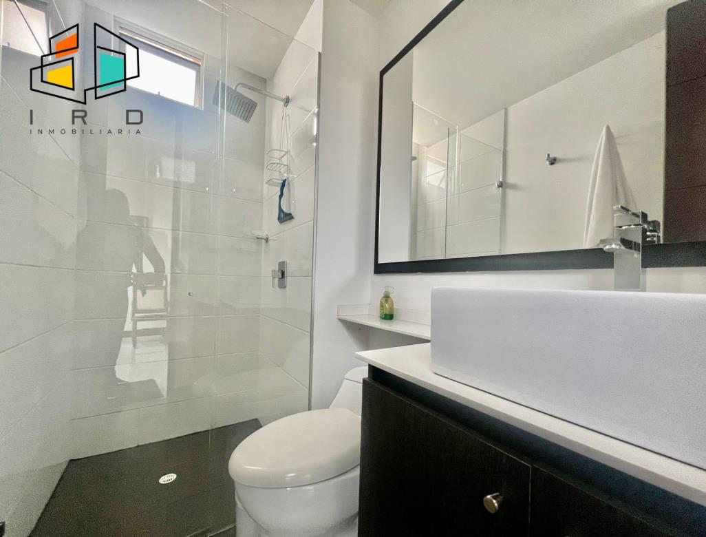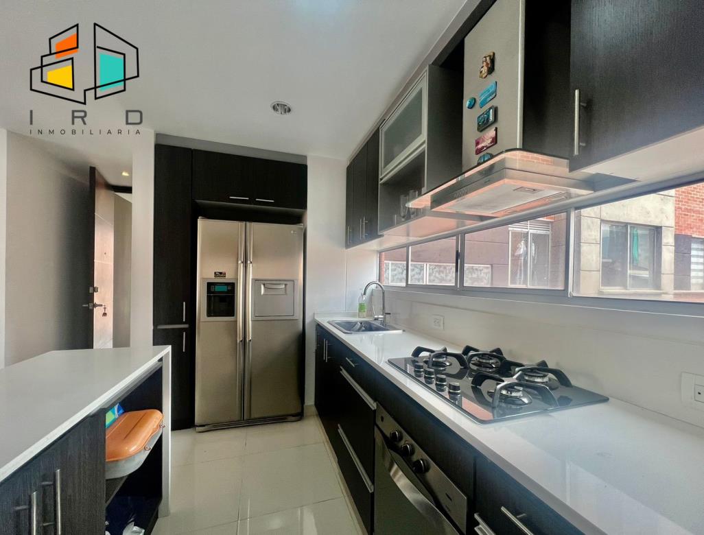 Arriendo Apartamento Amoblado. 2 habitaciones la principal con baño y vestier. 3 Baños, incluido el Baños social. Estudio/ Biblioteca. 2 closet, 1 vestier. Salón comedor, cocina integral con barra americana que integra a a la zona social. Zona de ropas. Parqueadero doble lineal.
