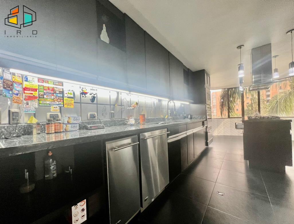 | Tipo de cocina | Integral Cocina integral Independiente amplia y espaciosa, cuenta con horno, campana extractora, lavaplatos eléctrico, Alacena, muebles superiores e inferiores en Madera & mesón Tipo Isla en mármol que también es Barra American |
