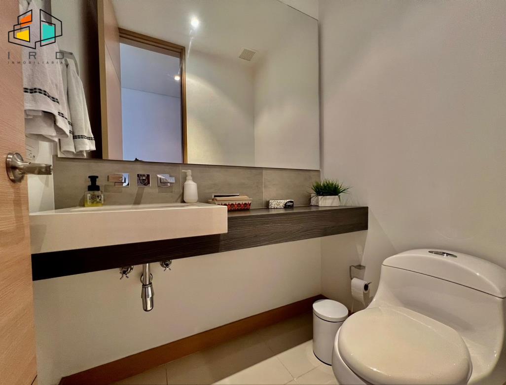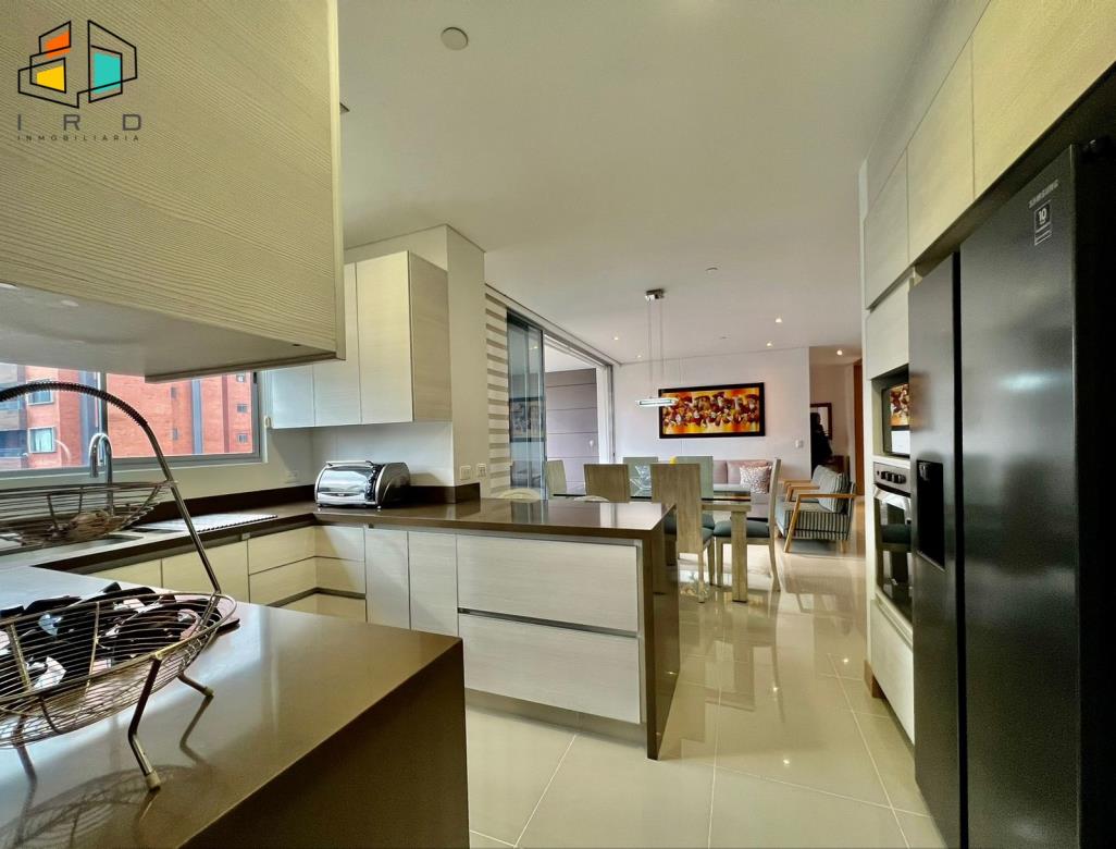 3 Habitaciones más cuarto del Servicio cada una con baño privado. 3 Vestier, 1 closet de Lino, 5 baños en total ( incluido el social y el del cuarto del servicio, Sala comedor, amplia cómoda e iluminada. Espacio para sala de televisión/ estudio,Cocina integral concepto abierto con Barra americana, Zona de ropas independiente con lavadora y secadora, Balcón Amplio con una Espectacular Vista. 1 parqueadero cubierto.