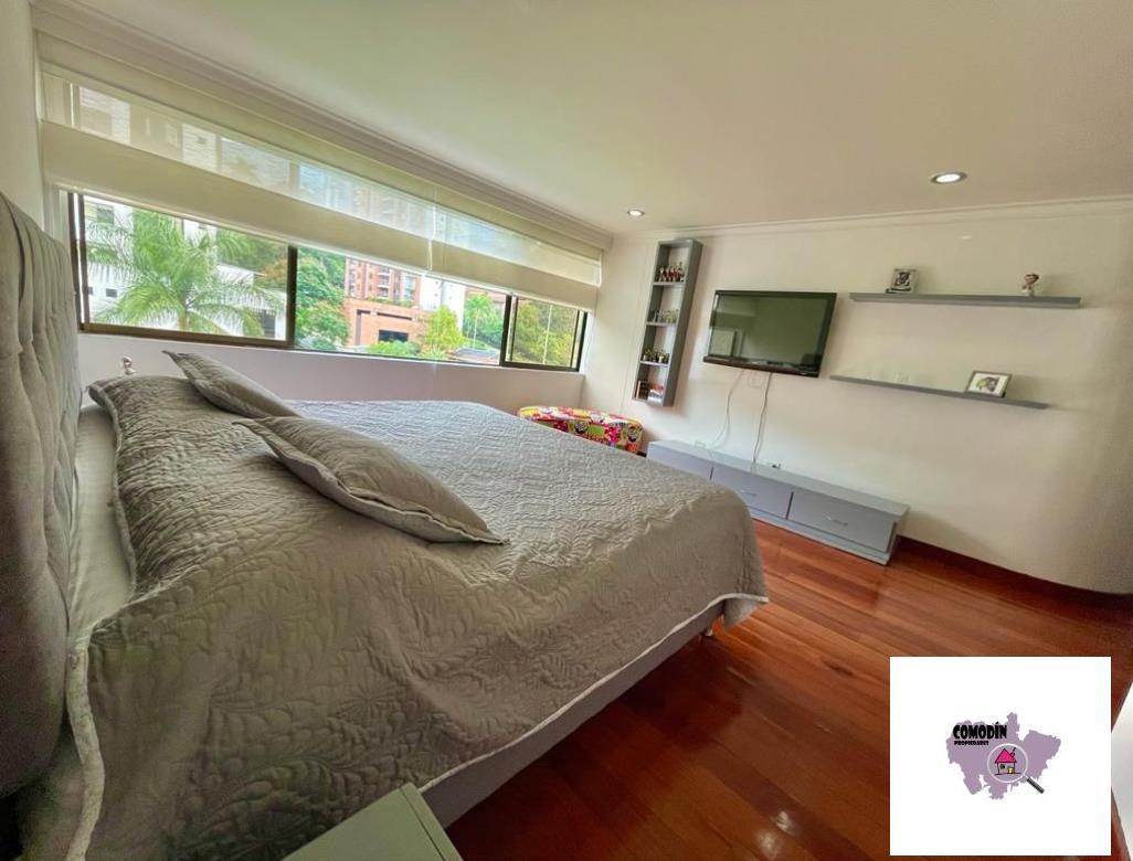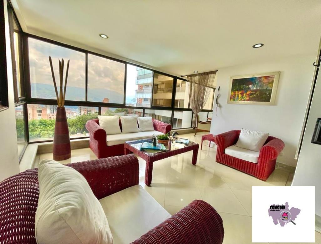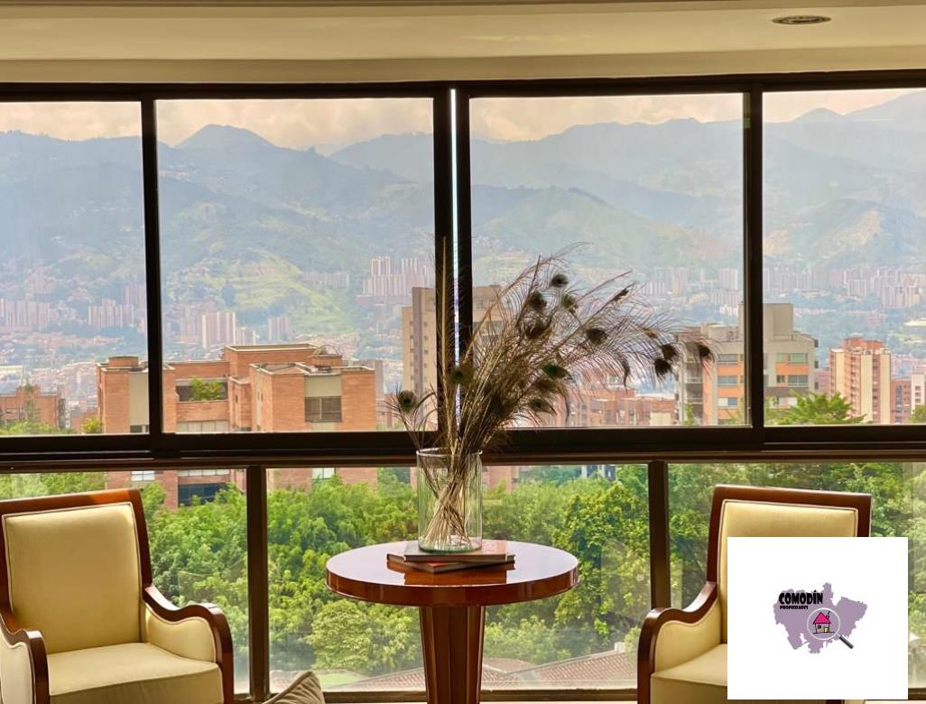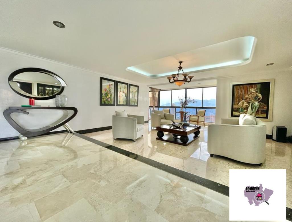 Venta de Apartamento con área 450 m2, cocina integral abierta, alcoba principal con baño, vestier, balcón, 3 alcobas cada una con baño y closet, alcoba de servicio con baño, baño social, sala tv, 2 salas sociales, sala-comedor, estudio, zona de laundry, terraza. Hermosa vista a la ciudad de Medellín.