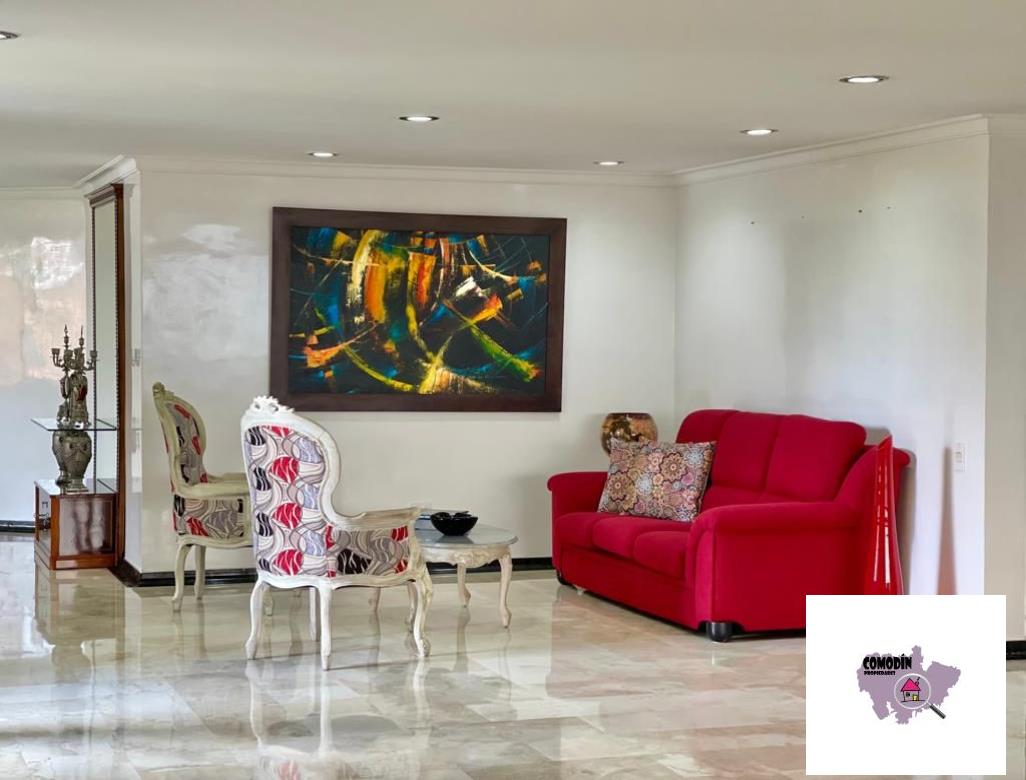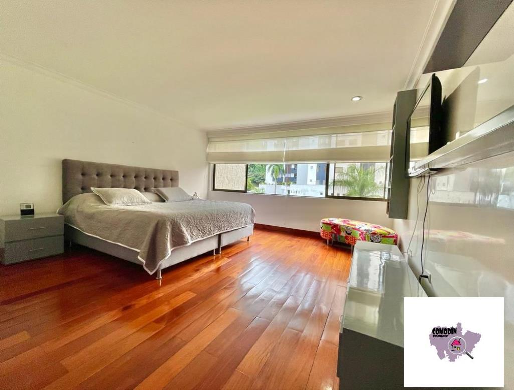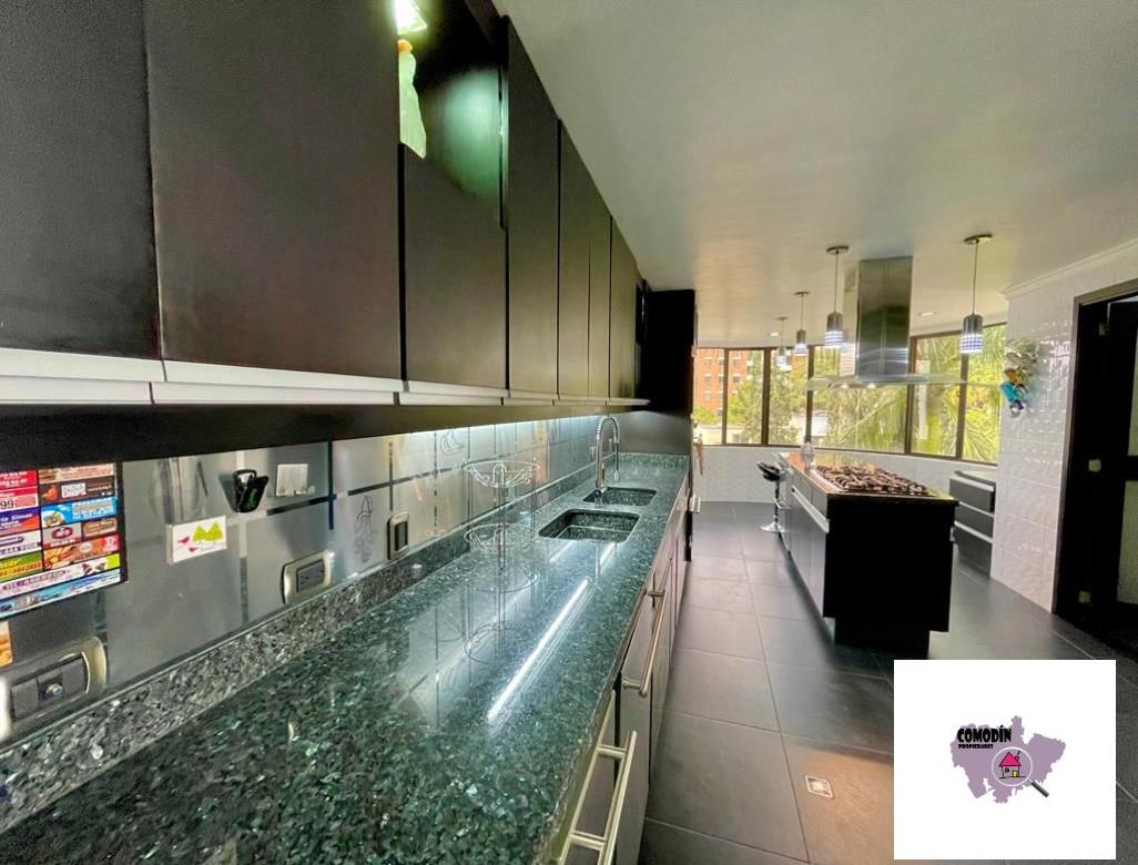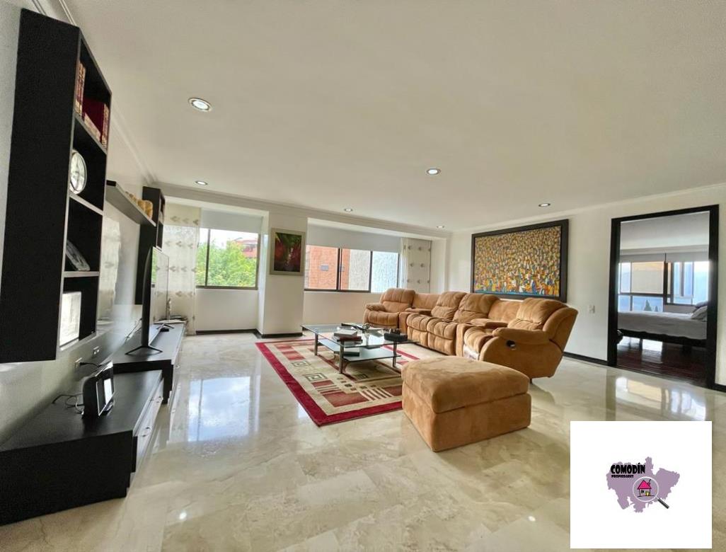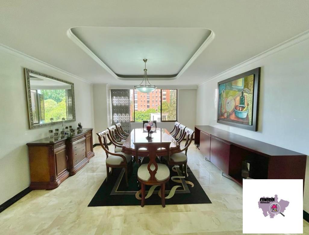Venta de Apartamento con área 450 m2, cocina integral abierta, alcoba principal con baño, vestier, balcón, 3 alcobas cada una con baño y closet, alcoba de servicio con baño, baño social, sala tv, 2 salas sociales, sala-comedor, estudio, zona de laundry, terraza. Hermosa vista a la ciudad de Medellín.