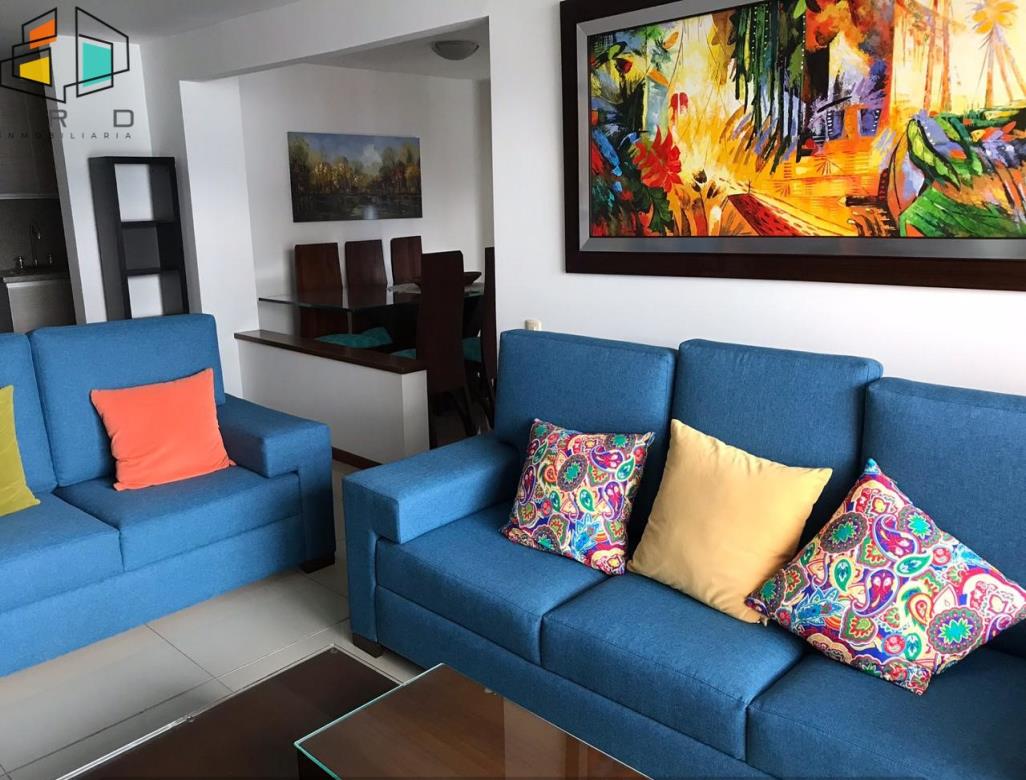 Arriendo apartamento amoblado en Poblado, cerca de Avenida Poblado, Centro Comercial Santa Fe y Centro Comercial Oviedo, con 80m2, sala, comedor, 3 habitaciones, 2 baños, cocina integral moderna y con acabados de lujo, balcón y parqueadero independiente. El edificio tiene juegos infantiles, gimnasio, piscina, turco, salon social y porteria las 24 horas. El canon de arrendamiento incluye servicios de wifi, y television.