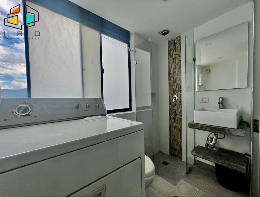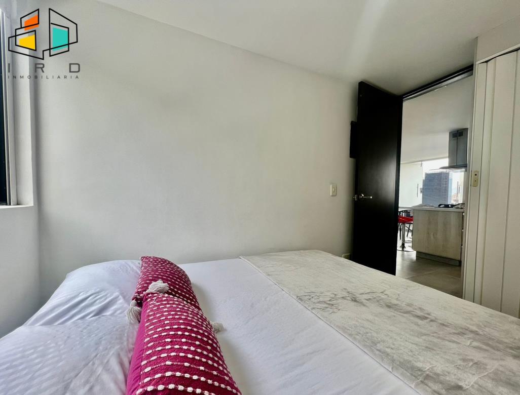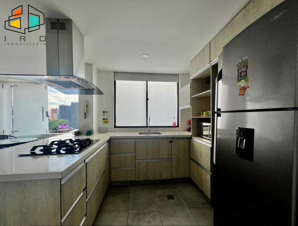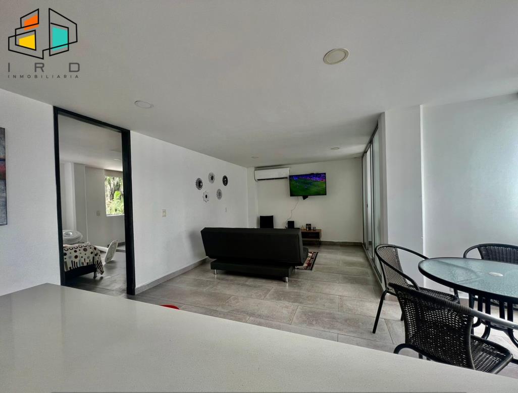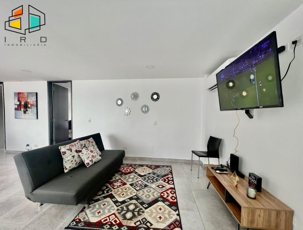 Arriendo Apartamento Amoblado, 2 habitaciones, la habitación principal con Vestier y baño, la habitación auxiliar con closet, 2 baños completo, sala/comedor con Tv, cocina integral abierta con barra americana, campana extractora, microondas, pisos en cerámica.