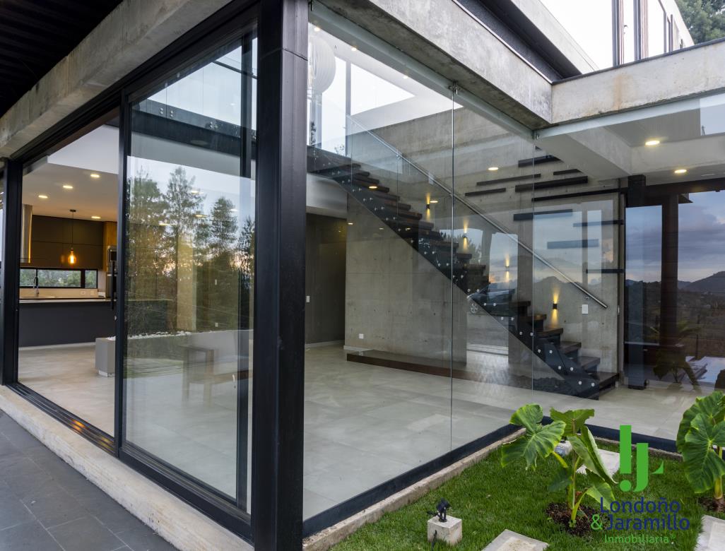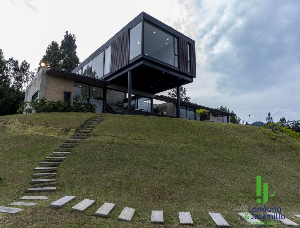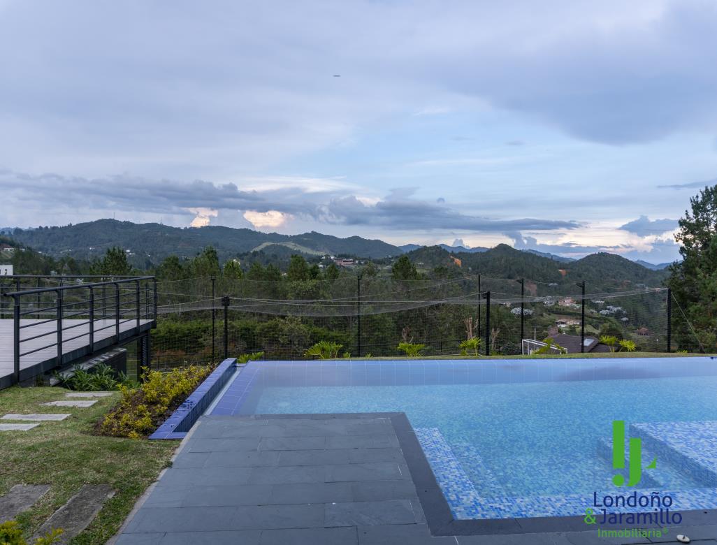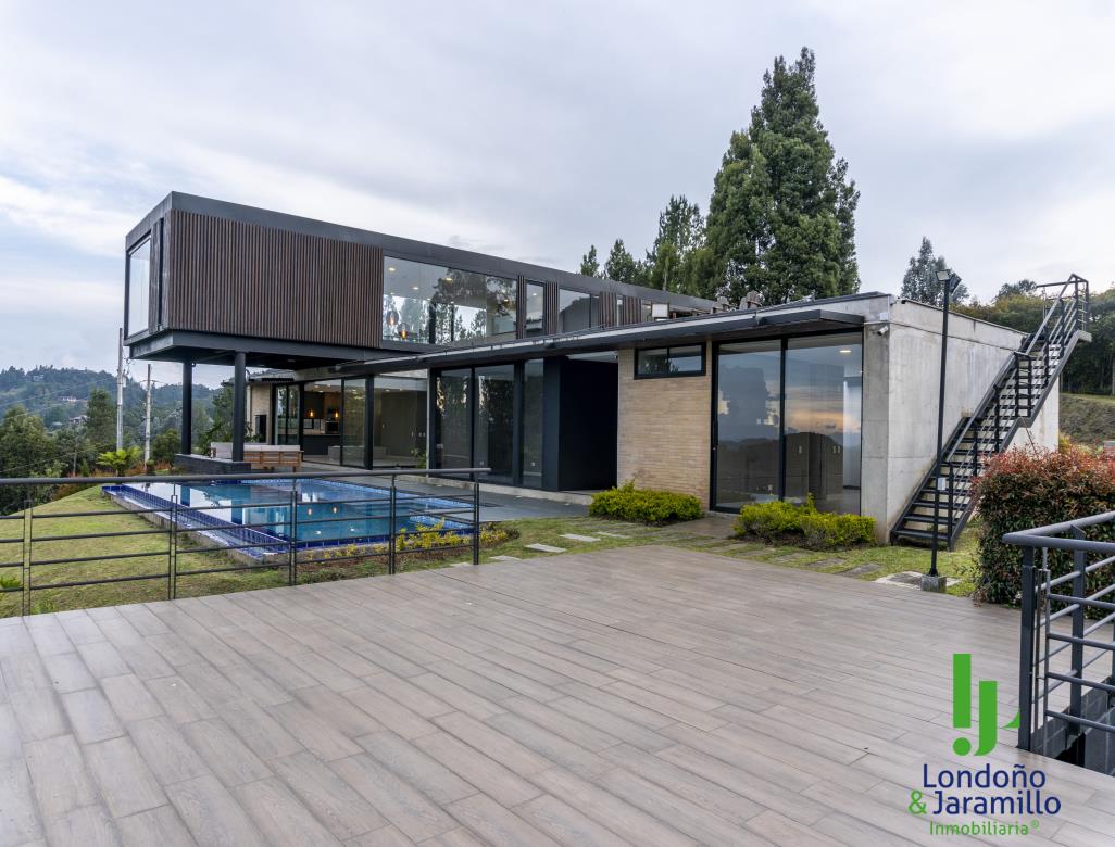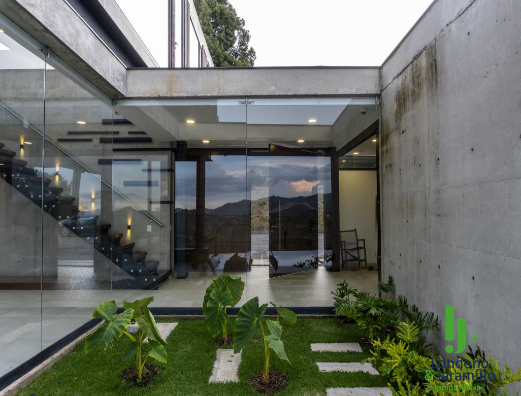 Venta casa de 750 m2 construidos, 6.500 m2 de lote, con 4 parqueaderos cubiertos, 6 de visitantes. Cuenta con 4 habitaciones grandes cada una con baño y vestier, 1 baño social, alcoba de servicio, estudio de música, sala-comedor grande, zona de ropas, útiles, despensa, cocina abierta, gimnasio, rack de sistemas, sala de TV, cuarto de linos, paneles solares, turco, piscina, jacuzzi, zona verde cancha de futbol. Además, un apartamento de huéspedes completo.