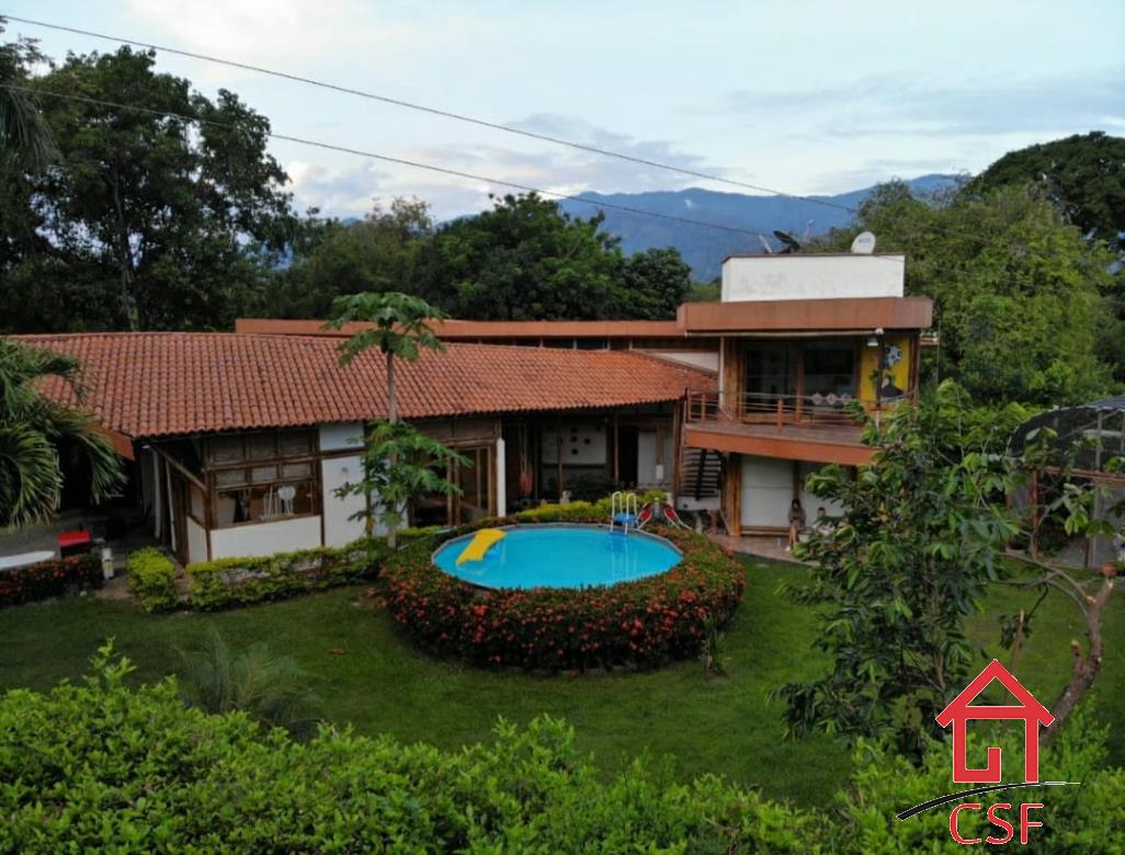 Es de doble altura y tiene ventilación cruzada, lo que hace q sea muy fresca, es un lote de 1350 m2, y 250 m2, construídos, tiene 4 alcobas, 3 baños, cuarto útil, pieza de herramientas, piscina estructural, 3 parqueaderos cubiertos,
