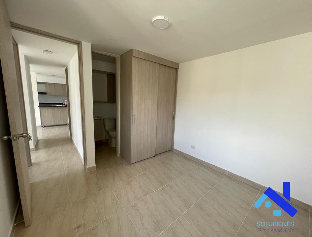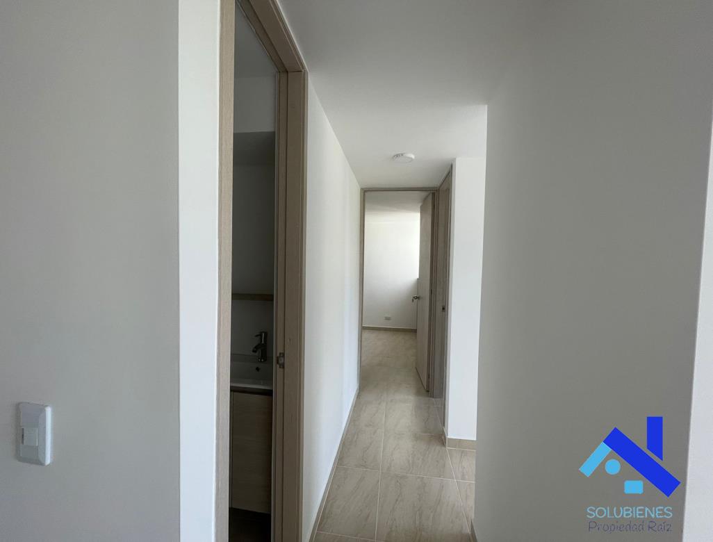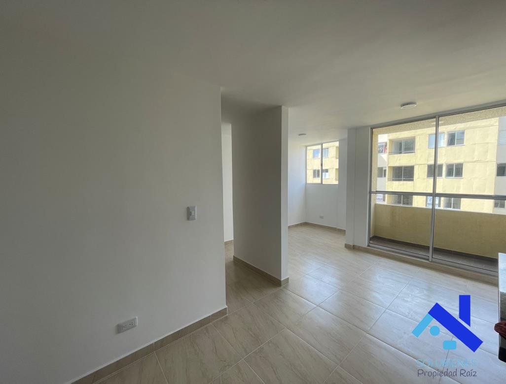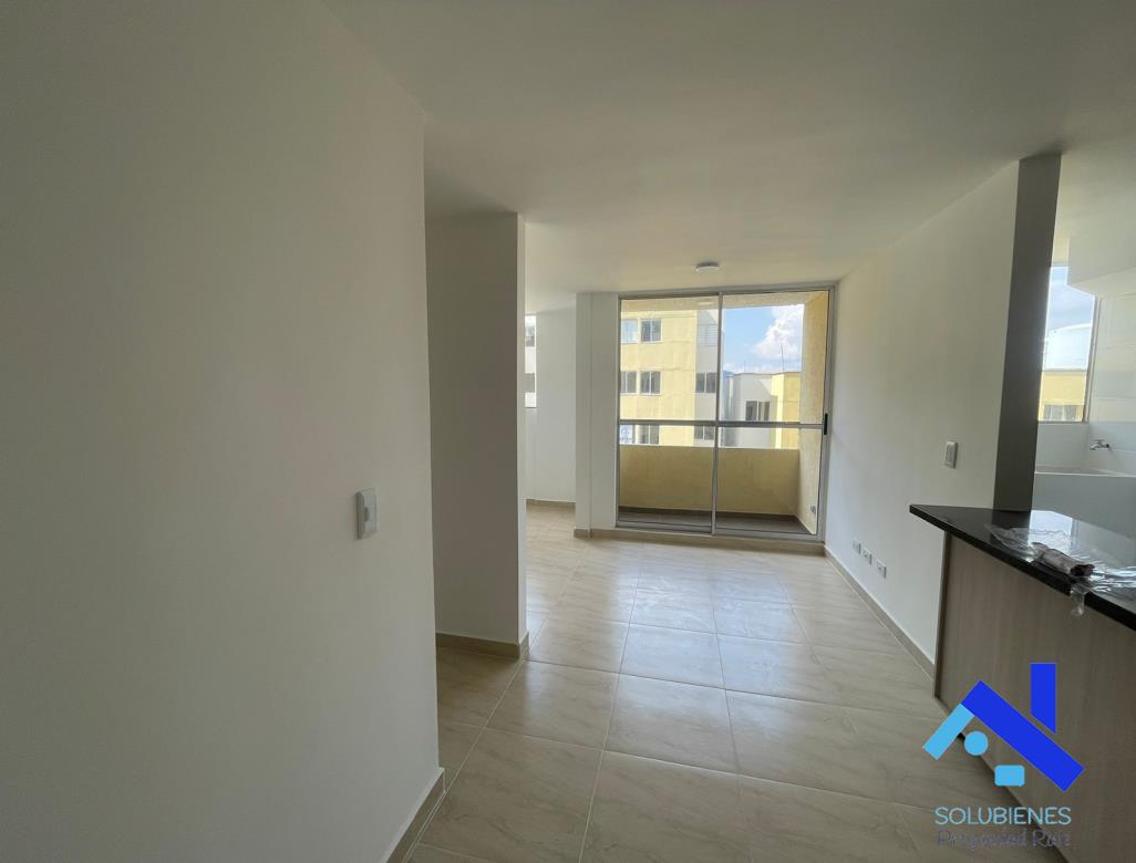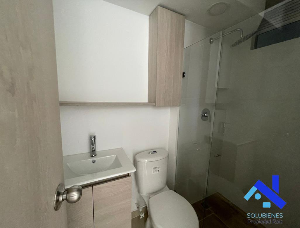54 metros cuadrados, distribuidos en 2 alcobas, 2 closet, estudio, 2 baños cabinados en vidrio templado, salón comedor con balcón, cocina integral abierta con mesón en mármol y barra tipo americana, zona de ropas, red de gas natural, pisos en cerámica.