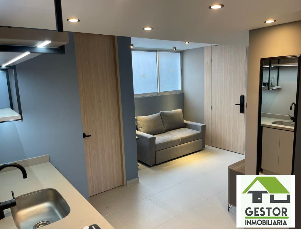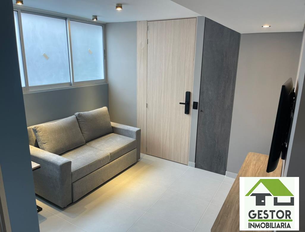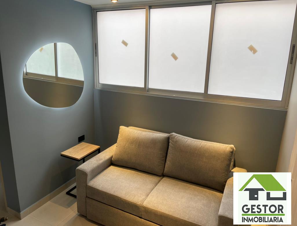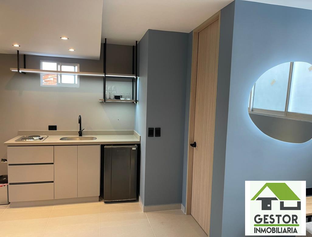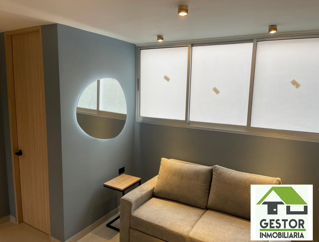 Apartaestudio en arriendo tipo Luft amoblado, ubicado en el sector del Poblado, acabados de lijo, 1 alcoba, cocina abierta, 1 baño, torre de lavado, libre espacio, aire acondicionado, cama queen, sofa cama, cerradura digital, opción de parqueadero, cerca al parque del Poblado, iglesia, restaurantes, transporte público, servicios complementarios.