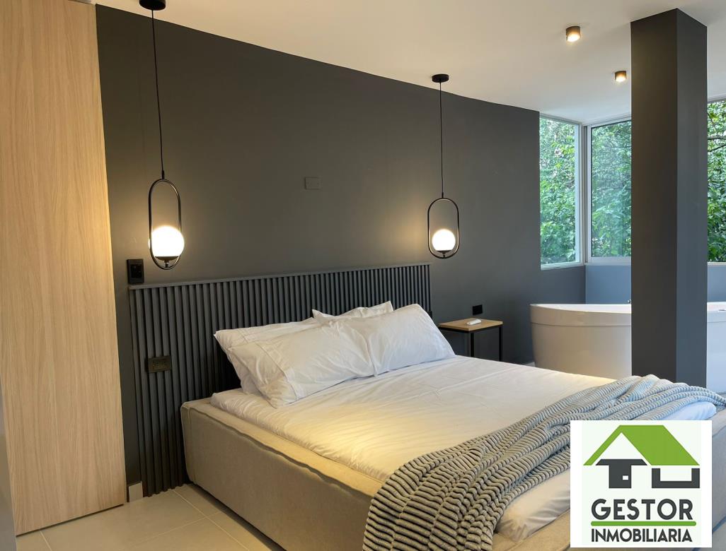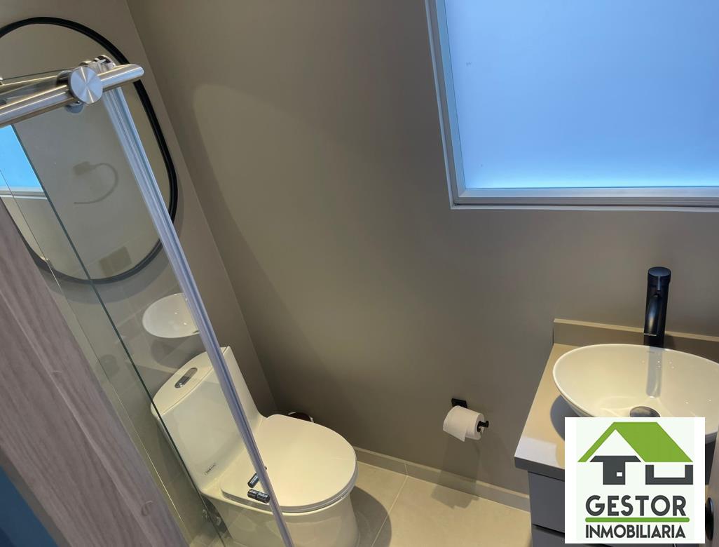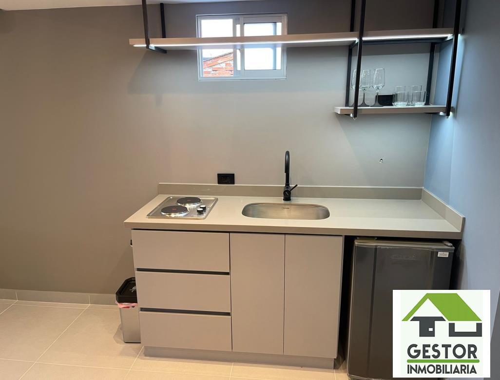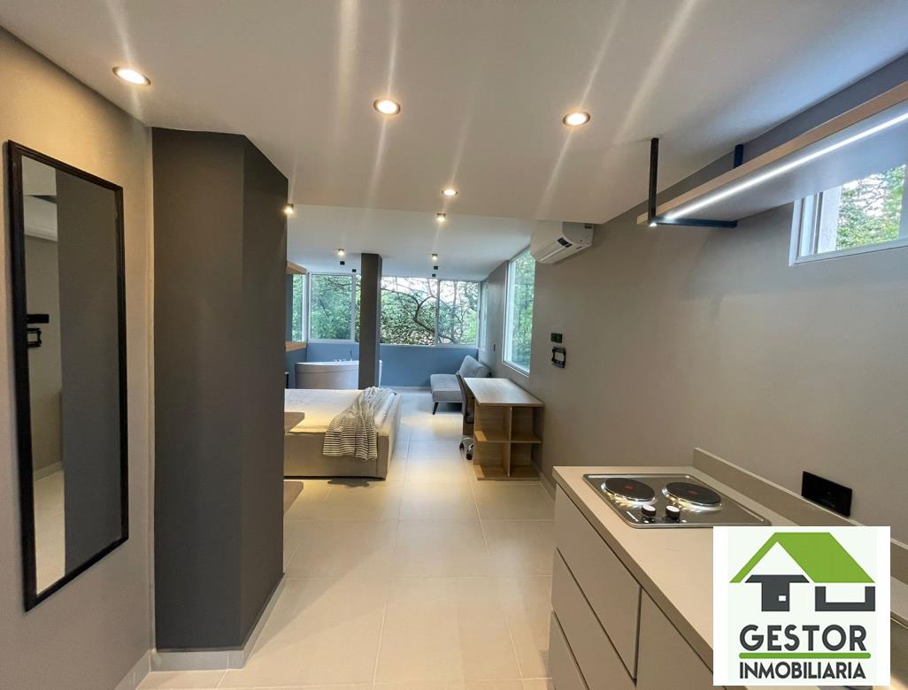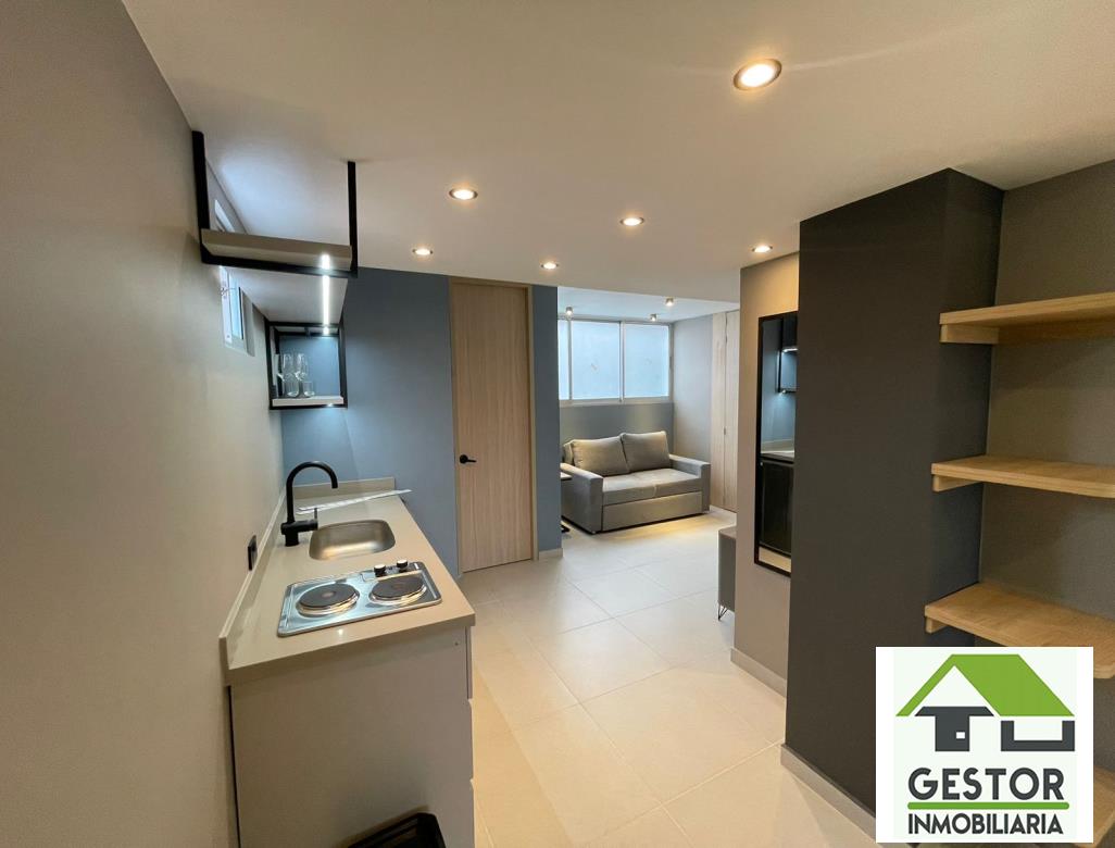 Apartaestudio en arriendo tipo Luft amoblado, ubicado en el sector del Poblado, acabados de lijo, 1 alcoba, cocina abierta, 1 baño, torre de lavado, libre espacio, aire acondicionado, cama queen, sofa cama, cerradura digital, opción de parqueadero, cerca al parque del Poblado, iglesia, restaurantes, transporte público, servicios complementarios.