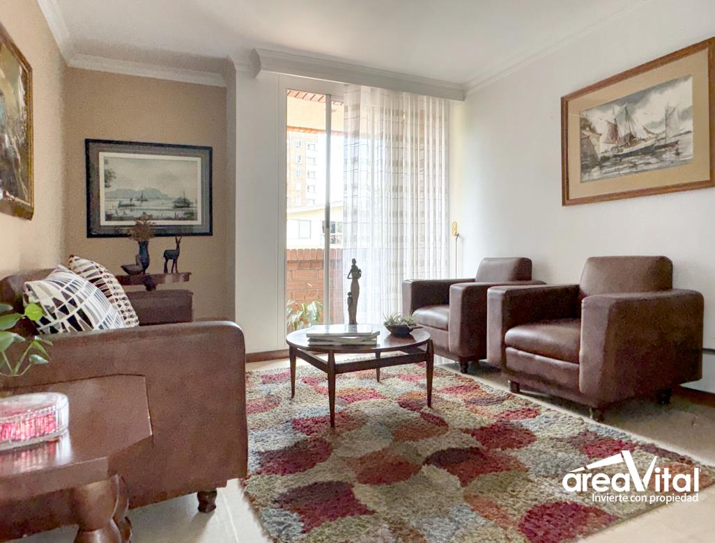 Consta de 3 habitaciones + servicio (habitación principal con baño), 3 baños + servicio, 3 balcones pequeños, 2 salas, comedor, estudio, calentador agua, cocina integral, zona de ropas, terraza, parqueadero doble lineal, cuarto útil.