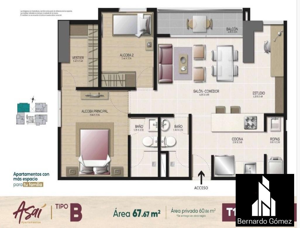 Asaí es un proyecto ubicado en el exclusivo y tranquilo sector de Suramérica, donde podrás contar con los servicios de transporte público, supermercados, cerca de las estaciones del metro de La Estrella y Sabaneta y del Mall Suramérica.
