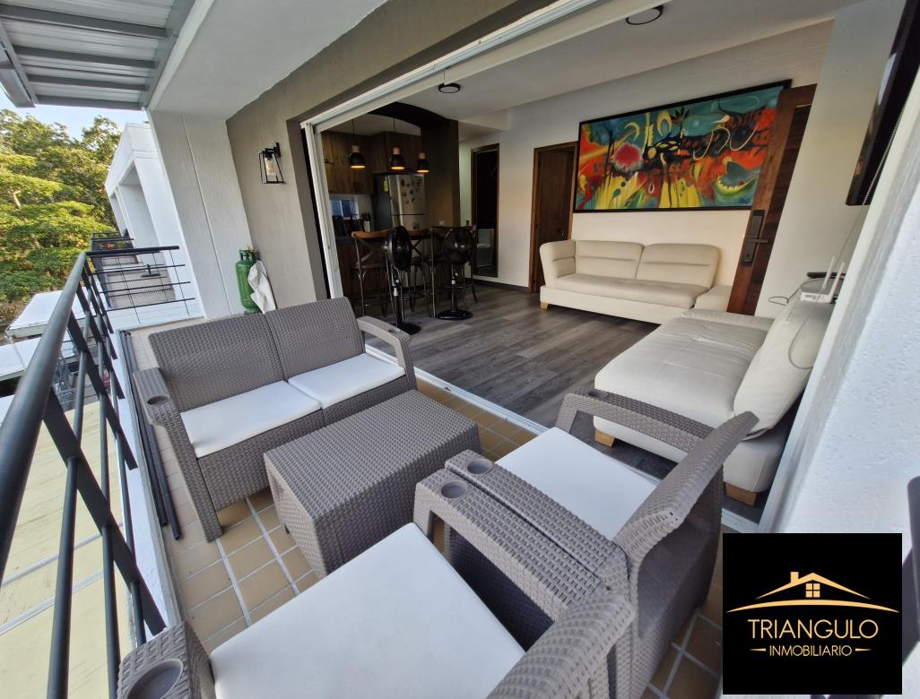 Venta de hermoso apartamento, en condominio turístico, área 48 mt2 aproximadamente, vista a las piscinas, habitación con aire acondicionado y closet, baño, balcón amplio, sala, cocina integral, zona de ropas, la unidad cuenta con: piscina para adultos y niños, tobogán, jacuzzi, 2 turcos, solárium, parque infantil, cancha de microfútbol, zonas verdes, portería 24 horas, parqueadero principal y visitantes. Zona segura, tranquila, turística y de alta valorización.