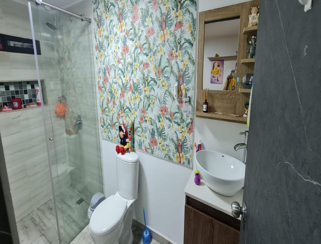 Cuenta con cuatro habitaciones, tres baños, dos clósets, un vestier, sala-comedor, biblioteca o estudio, cocina integral y patio con zona de ropas, ofreciendo una distribución funcional y espacios cómodos para toda la familia