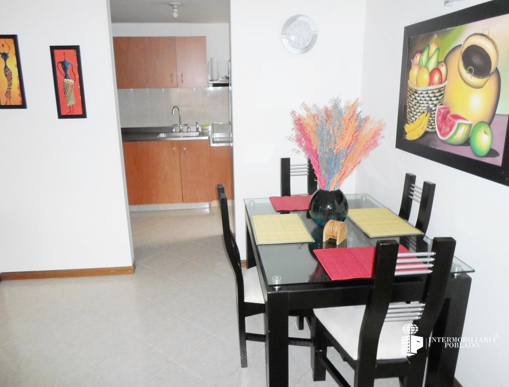 Sala comedor, 2 habitaciones + servicio, cocina integral, 3 baños, estudio, zona de ropas, red de gas, pisos en cerámica, balcón, 1 parqueadero.