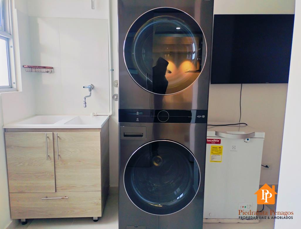 La zona de ropas independiente, equipada con lavadora, secadora y tendedero eléctrico, añade practicidad a su día a día. Una alcoba de servicio con televisión complementa este excepcional apartamento.