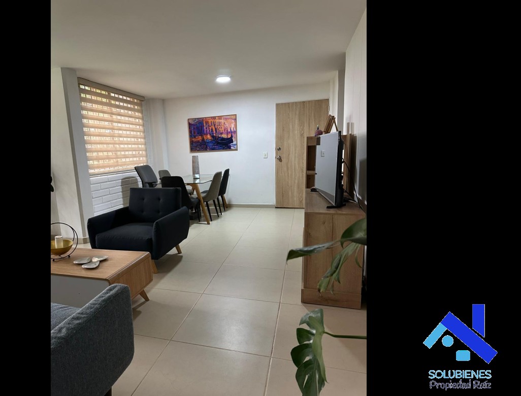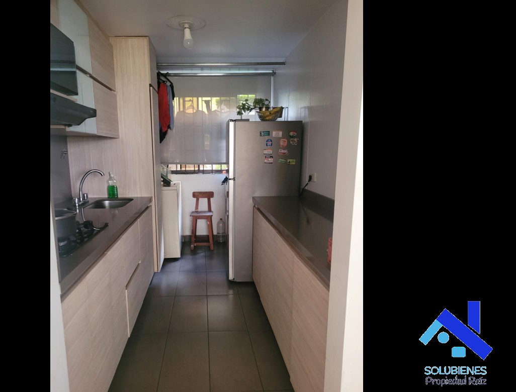 75 metros cuadrados, distribuidos en 3 alcobas, 3 closet, 2 baños cabinados en vidrio templado, salón comedor, cocina integral cerrada con mesón en aluminio, zona de ropas, red de gas natural, pisos en porcelanato, parqueadero.