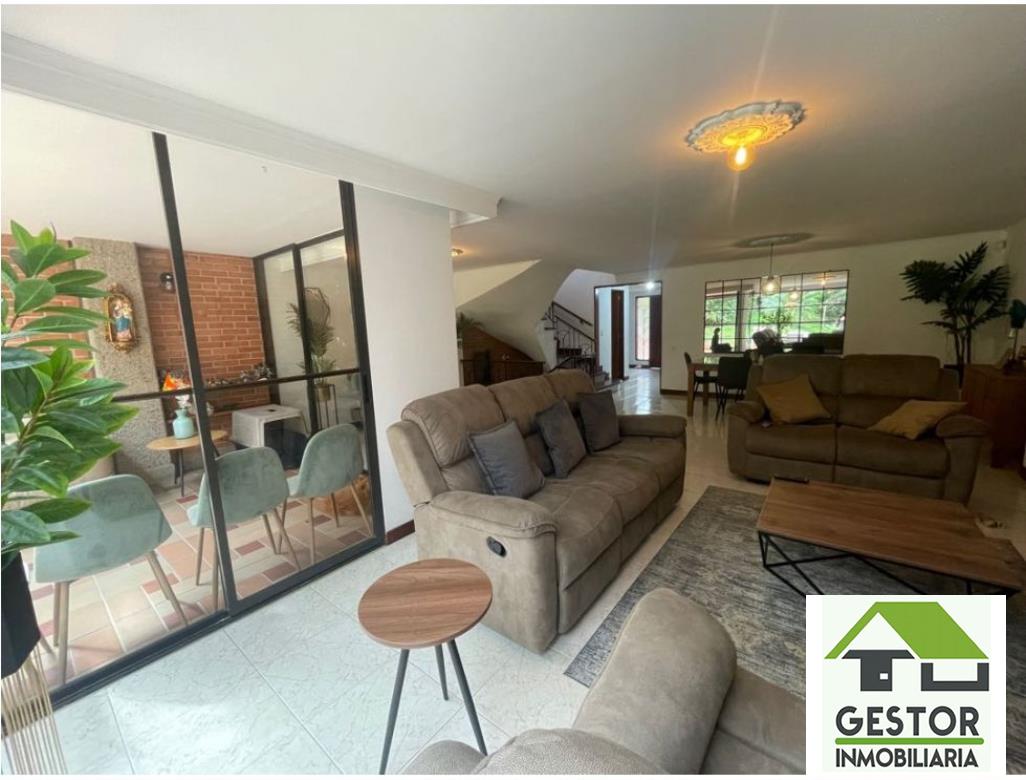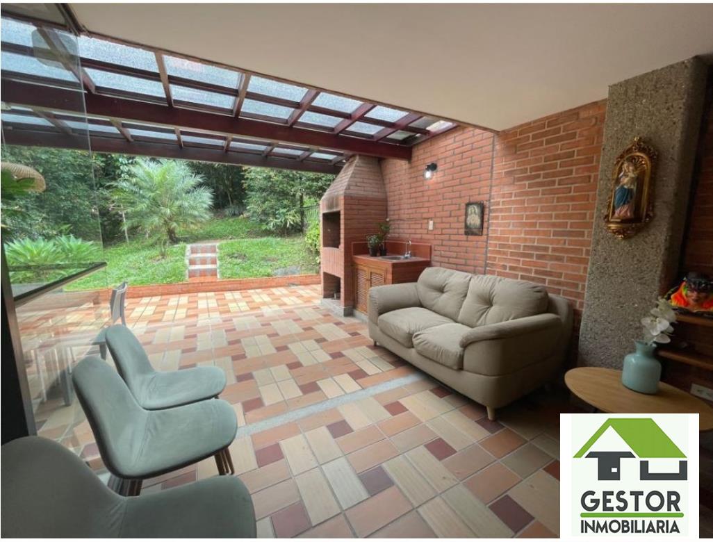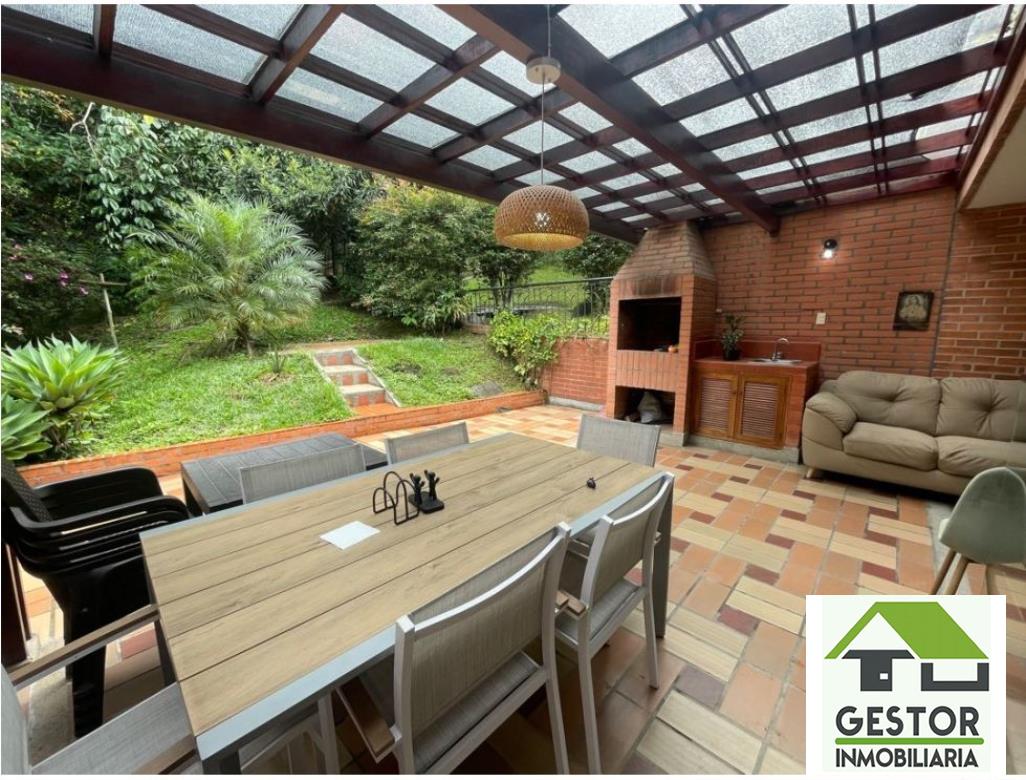 Casa en venta ubicada en la Loma de las brujas - Envigado, cuenta con 4 alcobas, 4 baños, baño social, 2 garajes, balcon, closets, cocina integral, cuarto de servicio, zona de ropas, chimenea, salon social, patio, piscina, zona infantil, zonas verdes, gimnasio, rio quebrada, cancha futbol, rutas de transporte e integradas del metro.