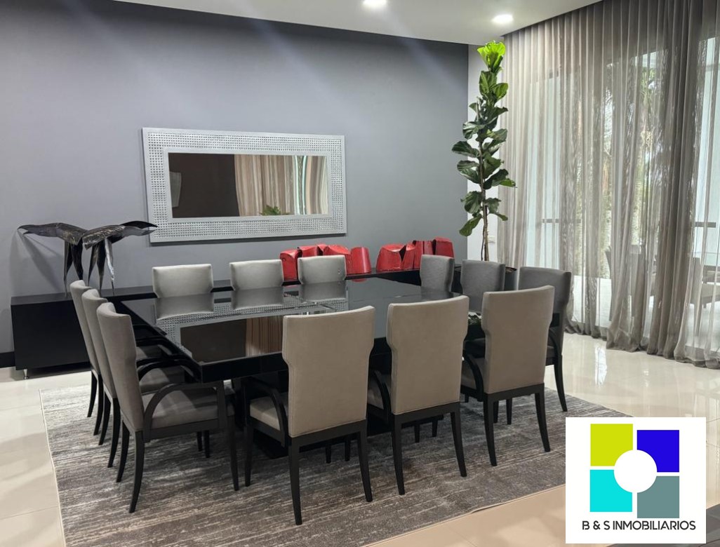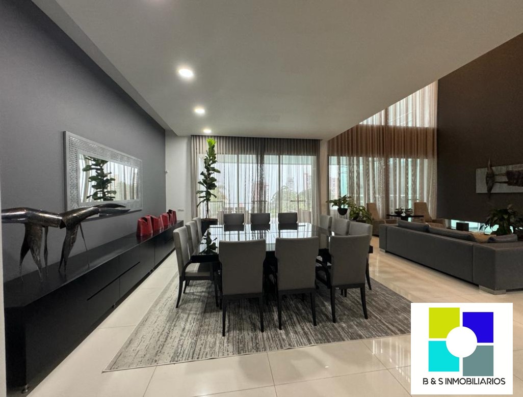 Cuenta con 5 Habitaciones todas con Baño y Vestier, y la Principal con Oficina para que sin nececidad de salir de Tu habitacion puedas Trabajar desde Casa. 2 Salas, Comedor, Cocina abierta, 2 cuartos de servicio, Gimnasio, fuente de agua al interior, Garaje Cubierto para 4 Vehiculos y Parqueadero de visitantes para 6. Cuarto Util, Jacuzzi, Piscina,