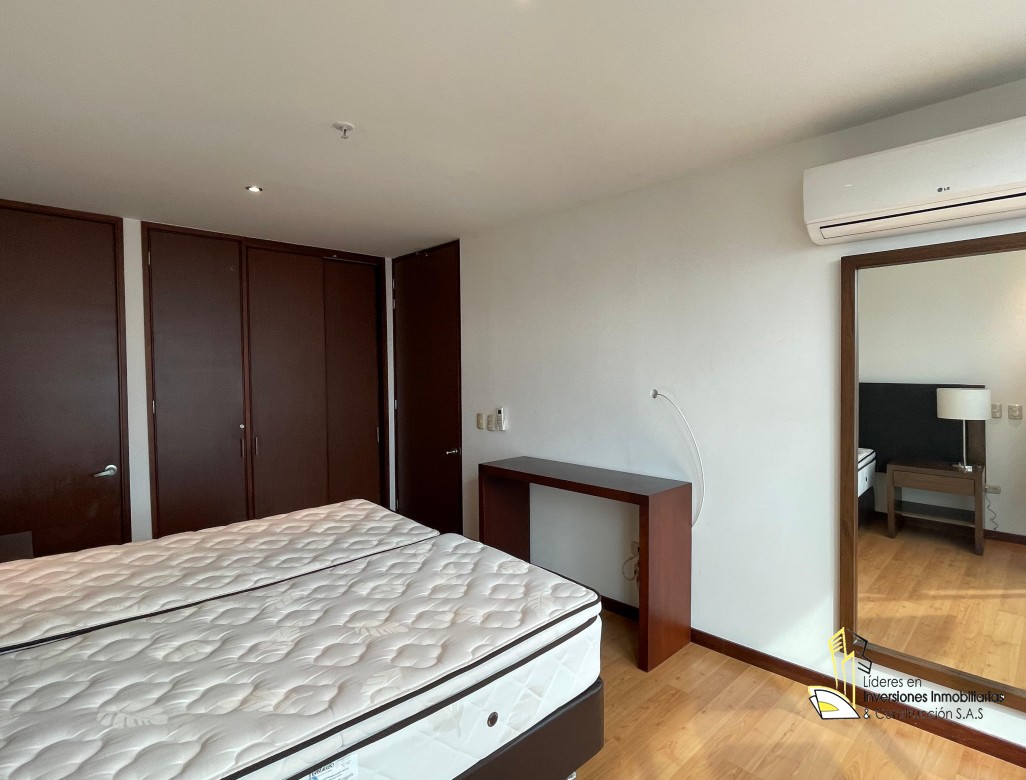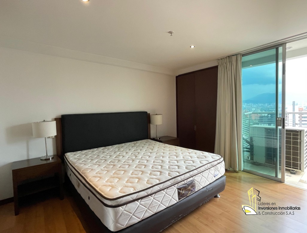 Apartamento AMOBLADO para el arriendo, cerca de centros comerciales, restaurantes, gimnasios, hoteles, bancos y multiples servicios complementarios. Cuenta con 2 habitaciones, 2 baños, sala, comedor, cocina integral tipo americano, zona de ropas y 1 parqueadero. Unidad con vigilancia las 24 horas, gimnasio, sauna y turco.