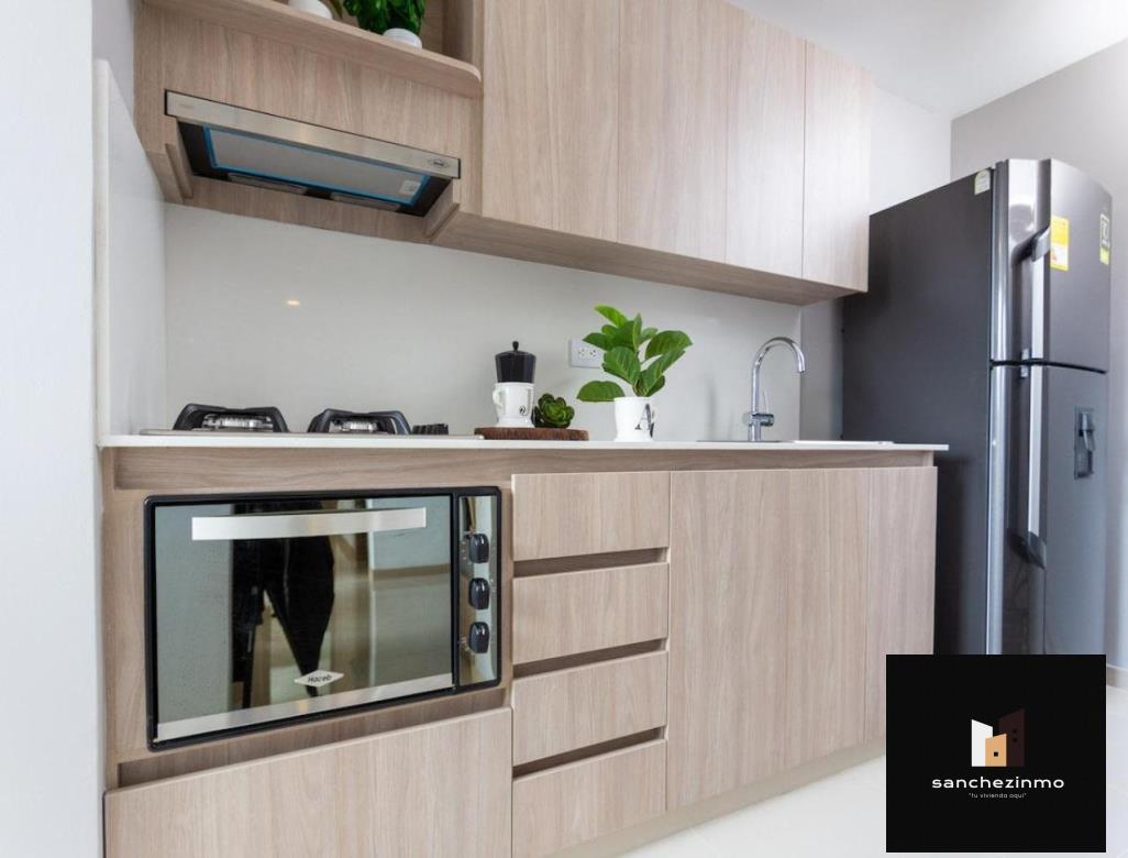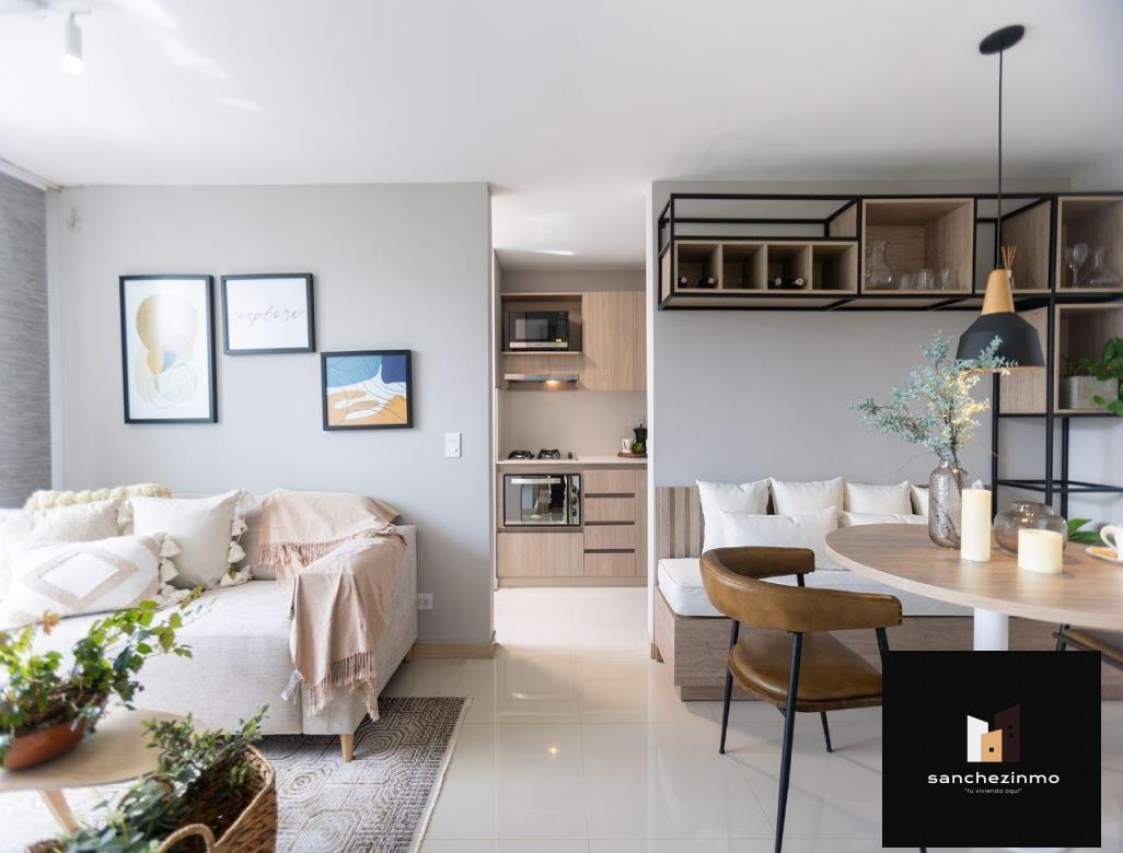 Apartamento en venta con lindos acabados modernos, 3 alcobas. todas las alcobas cuentan con closet, escritorio flotante, la principal con baño, ambos baños completos, cocina integral con red de gas y barra, zona de ropas, calentador, sala-comedor, balcón y parqueadero