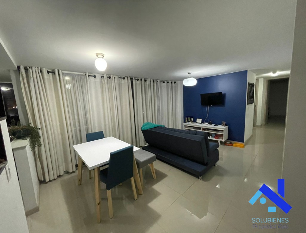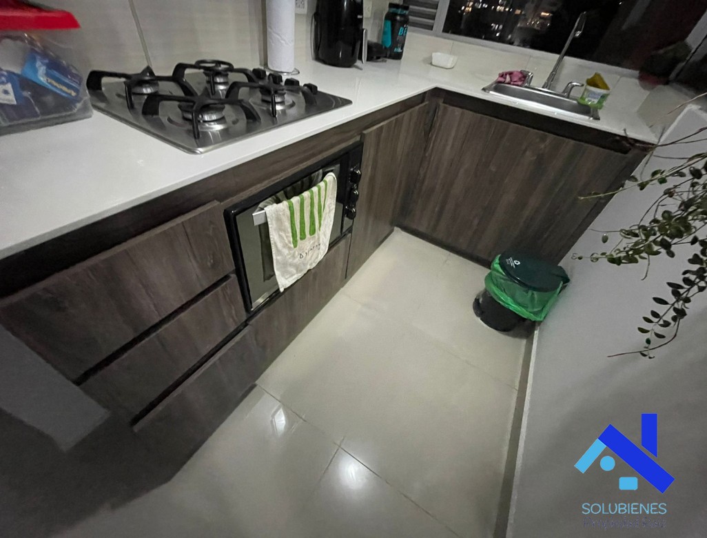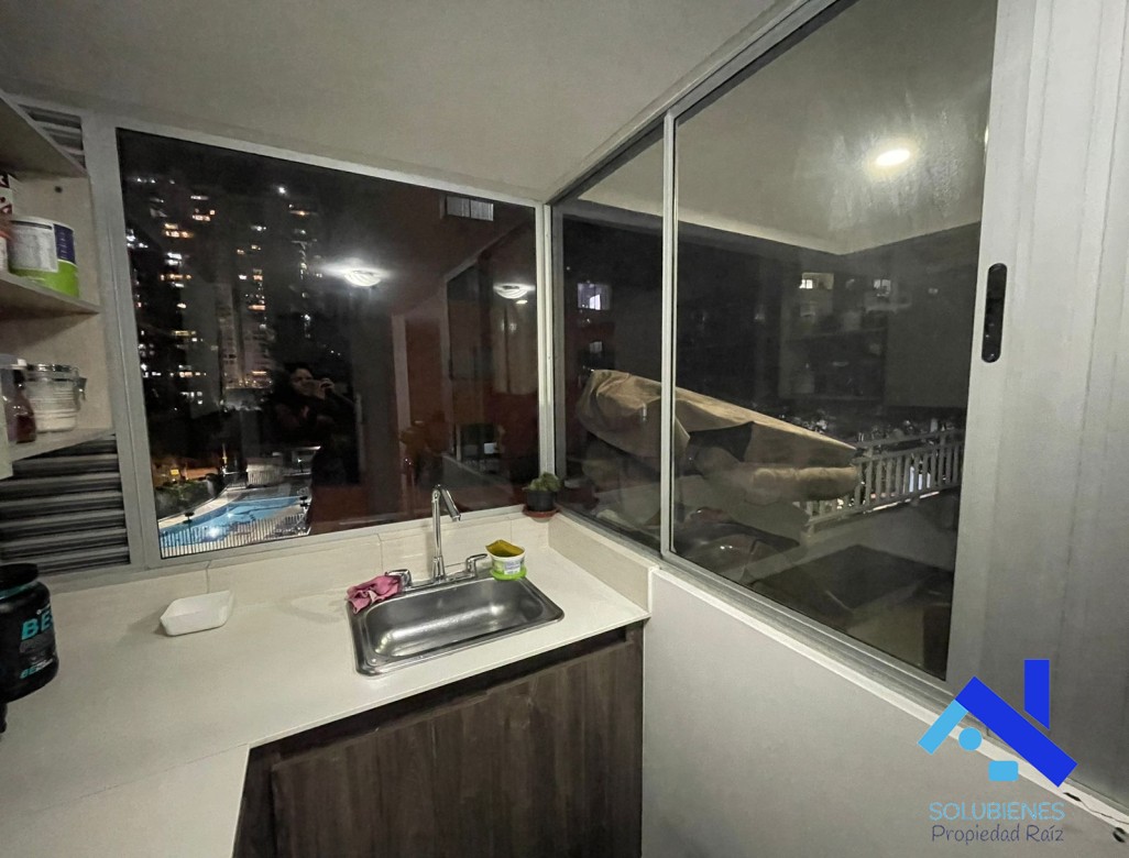 73 metros cuadrados, distribuidos en 3 alcobas, 2 closet, 1 vestier, 2 baños cabinados en vidrio templado, salón comedor con balcón, cocina integral abierta con mesón en cuarzo y barra tipo americana, zona de ropas, red de gas natural, pisos en porcelanato, parqueadero,+ cuarto útil.