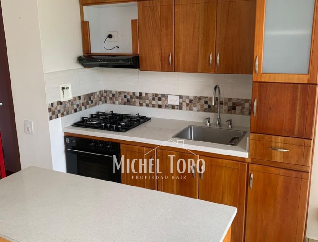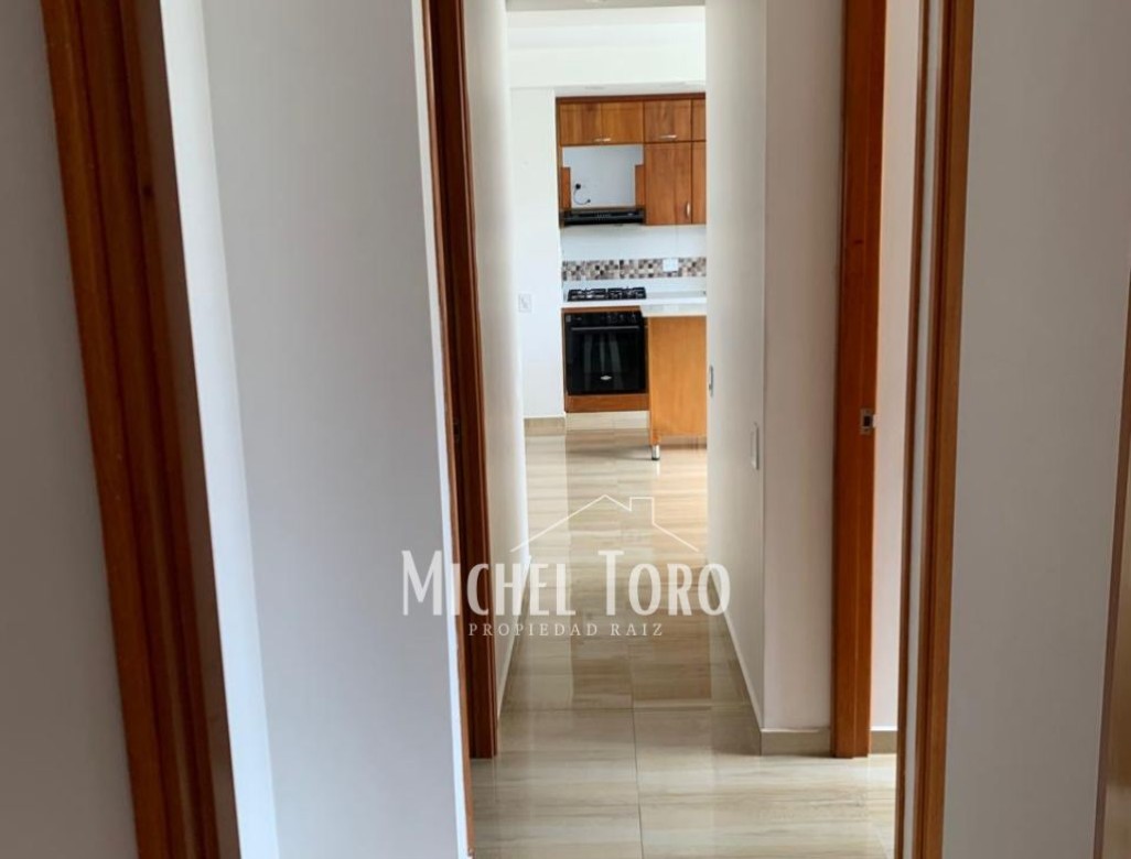 Apartamento en venta práctico y moderno. Consta de 65m2, distribuidos en 3 alcobas (dos closets y un vestier), 2 baños, cocina integral en madera, zona de ropas, sala - comedor, balcón y parqueadero cubierto.