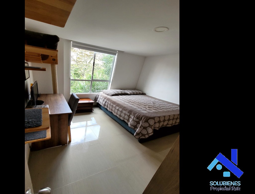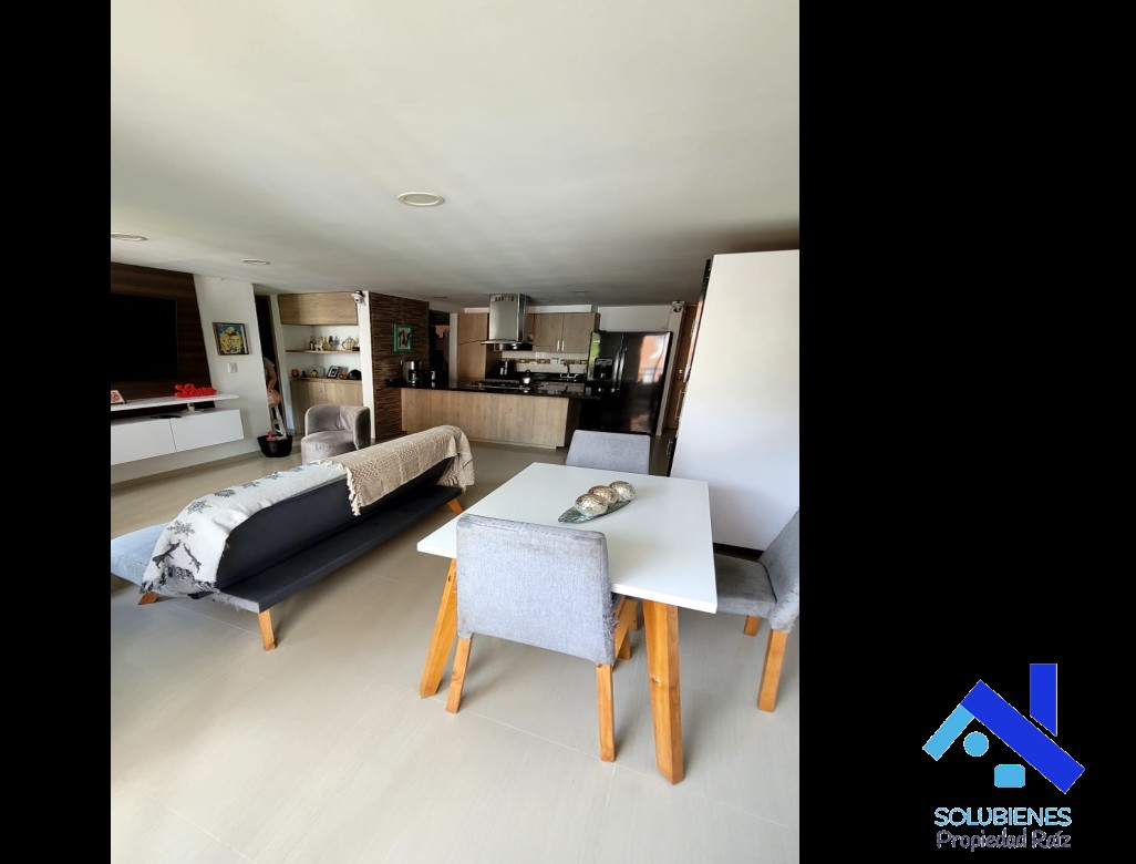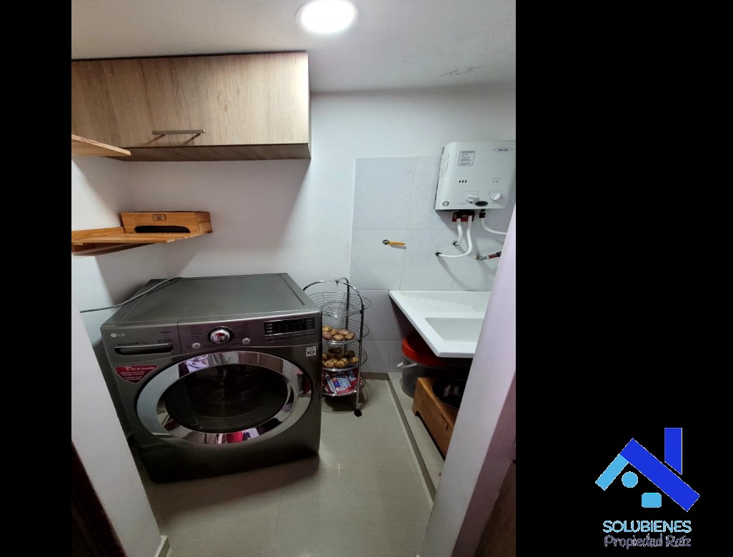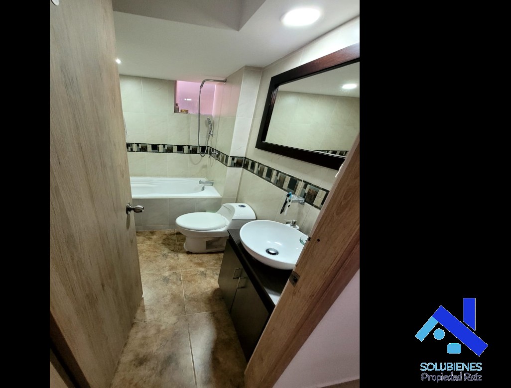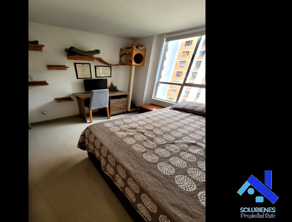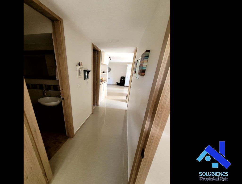 76 metros cuadrados, distribuidos en 2 alcobas, 1 closet, 1 vestier, 2 baños cabinados en vidrio templado, salón comedor con balcón, cocina integral abierta con mesón en cuarzo y barra tipo americana, zona de ropas, red de gas natural, pisos en porcelanato y madera laminada, parqueadero, + cuarto útil.