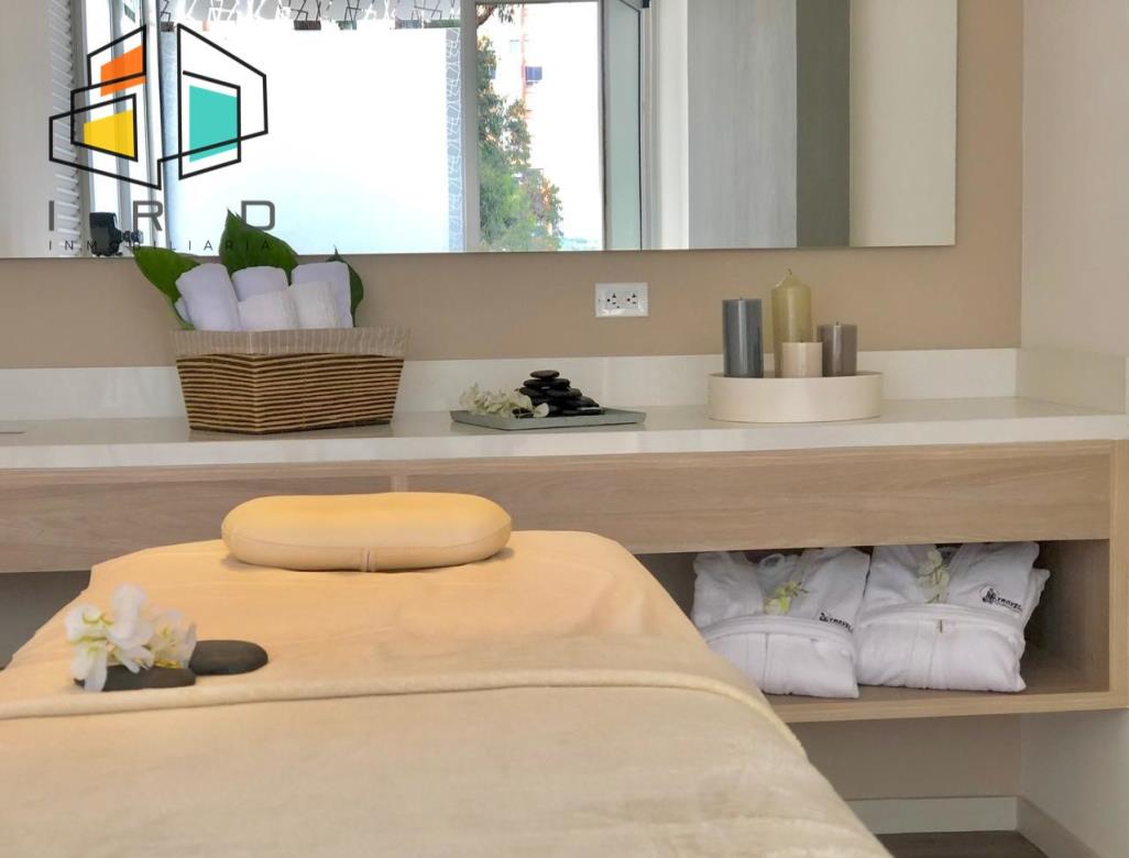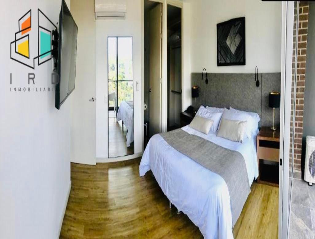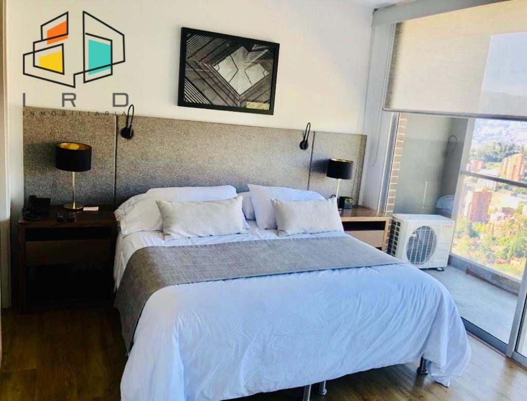 Apartaestudio, 1 Habitacion, 2 baños, sala/comedor, cocina integral, zona de ropas, balcon con espectacular vista, parqueadero independiente.