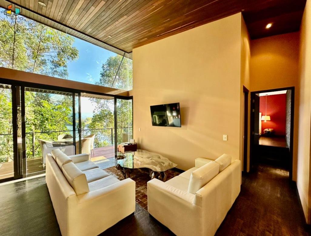 cabaña amoblada. 2 habitaciones, 2 baños en total el principal con bañera. salón comedor: amplio espacioso e iluminado con televisor smart tv pantalla plana, mobiliario moderno y confortable. balcón: amplio y espacioso rodeado de zona verde con ventanales piso techo de pared a pared con encatadora vista a la represa y a la piedra del peñol. cocina semi integral, hall de alcobas, el parquadero y la lavandería son gastos extras no están incluidos dentro del valor del canon. esta ...