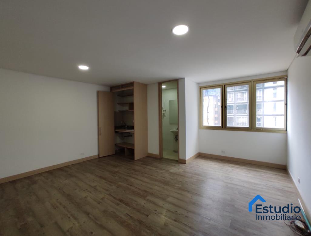 arriendo medellin aparta-oficina b aires, en edificio, estrato 4, con un área de 20 m2, cuenta con cocineta con red de gas, baño con calentadores, cama retráctil, mesa retráctil, tv, internet, puertas con código de seguridad, ventanales con vista a l ...