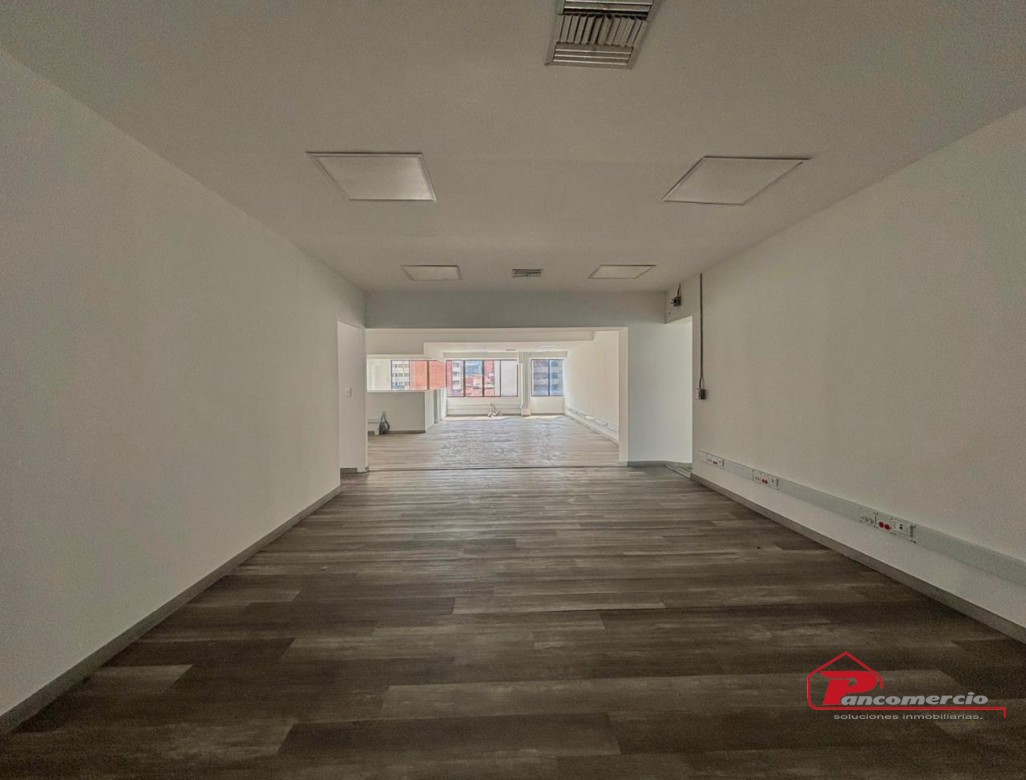 se arrienda oficina comercial con 131m², salón amplio para modificar espacios, 2 baños, 1 cocineta, 1 cuarto de utensilios de aseo, piso laminado, archivo amplio, 1 sala de espera, espacio para aproximadamente 50 espacios de trabajo, aire acondicio ...