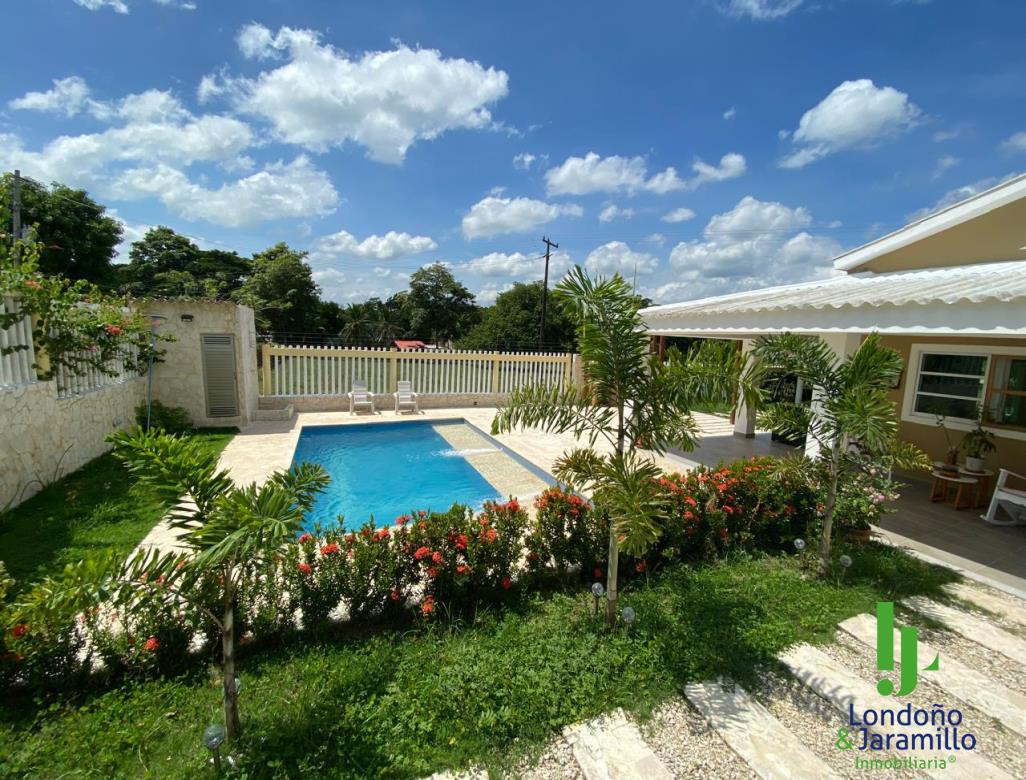 venta cabaña con 540 m2 de lote y 257 mts construidos. cuenta con piscina privada y mirador, 3 habitaciones todas con aire y closets grandes y amplios, 2 baños, bodega, zona de ropas, sala, comedor, cocina integral para estrenar, cerca eléctrica en todo el perímetro, sembrado todo el perímetro con veraneras, reserva de agua de 18 mil litros más tanque elevado de 2 mil litros lo que garantiza que nunca faltaría agua, portada independiente, es decir, no es parcelación ni unidad cerrada, la cabaña ...