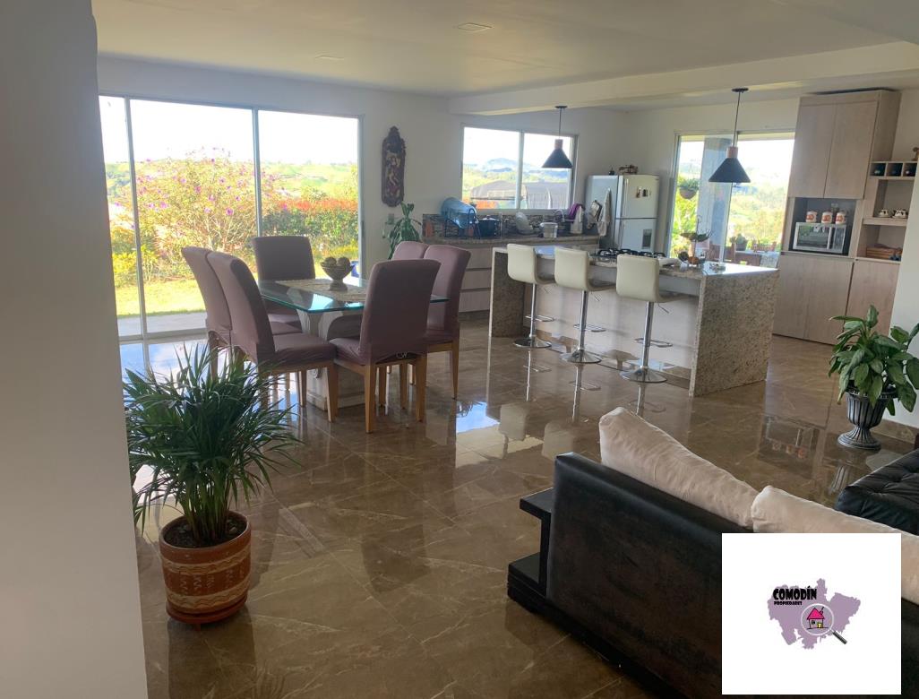 venta de casa campestre con área de lote 1.600 m2 y construídos 420 m2 dúplex. cuenta con 4 alcobas con vestier, 4 baños, 4 salas, dos comedores, cocina con isla, torre y licorera, patio, terraza con vista al pueblo, dos cuartos útiles, parqueadero para 6 carros ( 2 cubiertos), jardines y 10 palos de aguacate. sauna y turco. valor $ 1.100.000.000 (se recibe apto. en medellin) ...